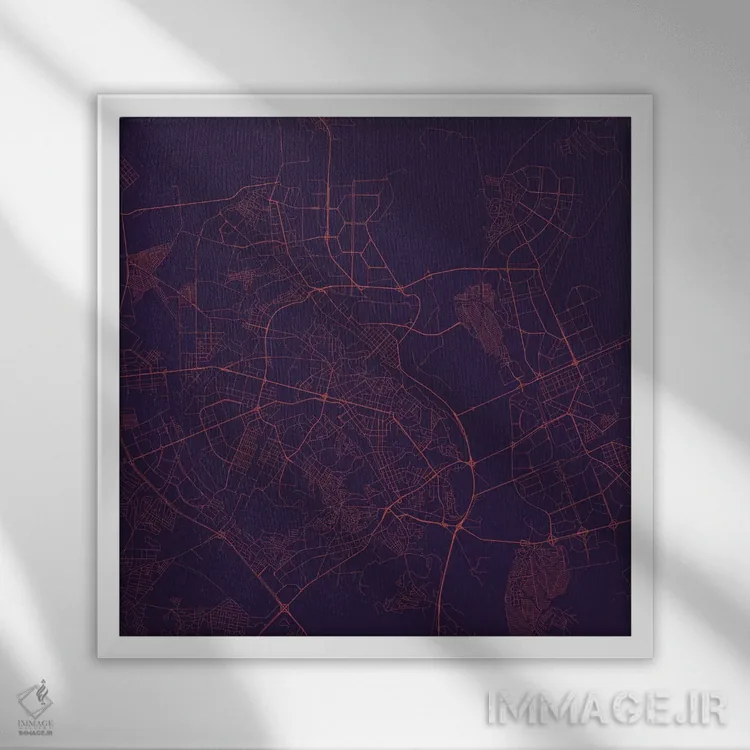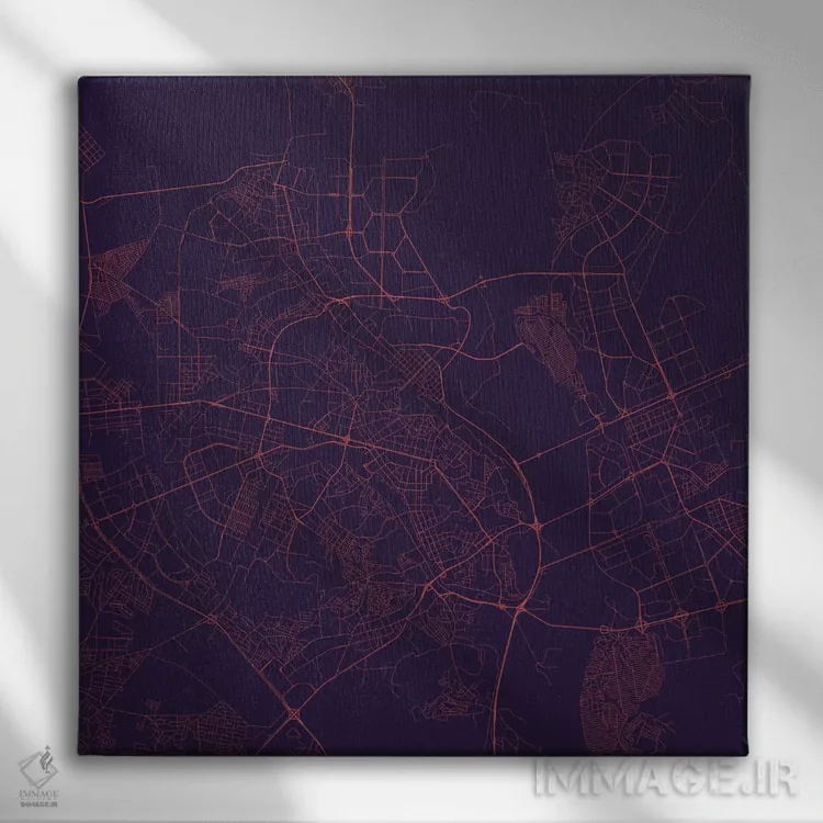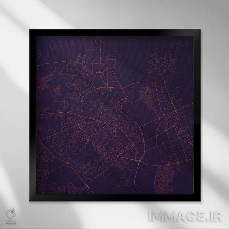 «نقشه راههای شهری کییف (شب بنفش)» اثرِ «اوربانمپ (نقشه شهری؛ استودیو نقشه یا طراح)» در فضای هنری، بیشتر از روایت مستقیم، روی حس و فرم تکیه دارد؛ مناسب برای دکورهای مدرن.