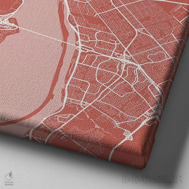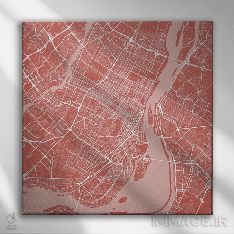 «نقشه راههای شهری مونترال (صورتی)» اثرِ «اوربانمپ (نقشه شهری؛ استودیو نقشه یا طراح)» در قالب هنری، به فضا عمق و ریتم میدهد؛ برای کنار مبلمان ساده و نورپردازی گرم عالی است.
