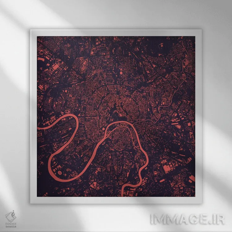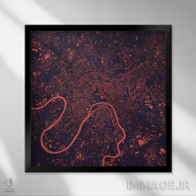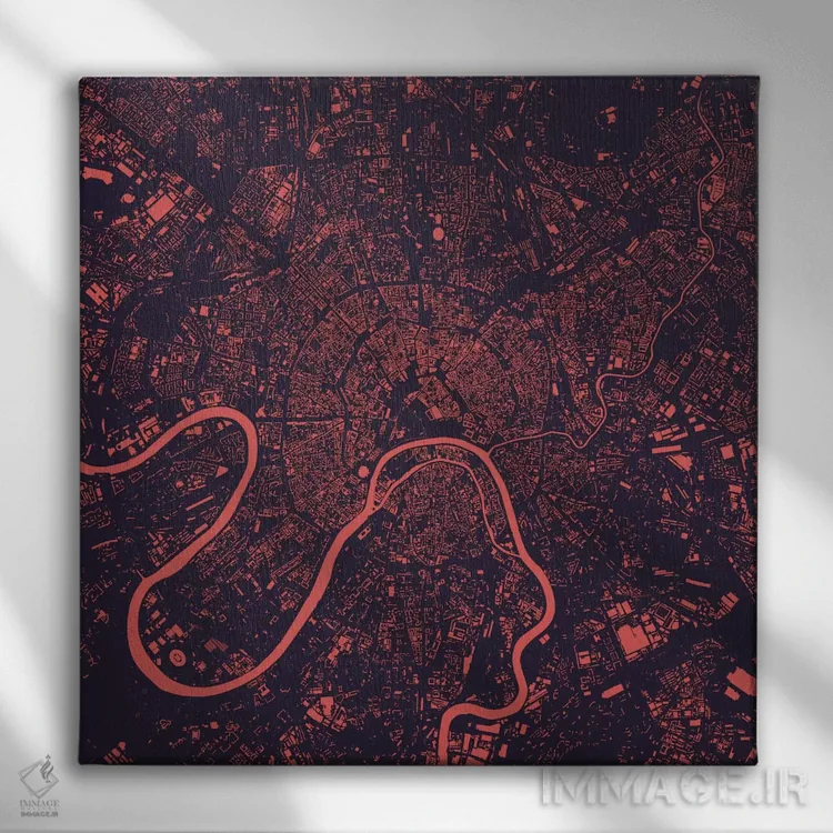 «نقشه شهری مسکو (شب بنفش)» اثرِ «اوربانمپ (نقشه شهری؛ استودیو نقشه یا طراح)» اگر دنبال اثر انتزاعیِ قابلچیدمان هستید که فضا را سنگین نکند، گزینهی خوبیست.