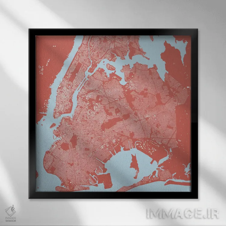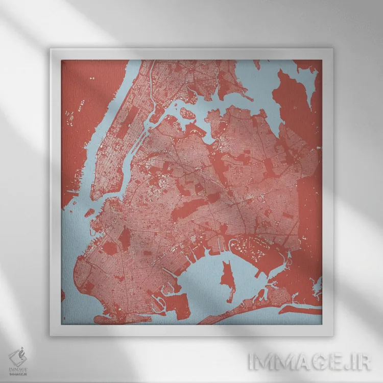 «نقشه شهری نیویورک (صورتی)» اثرِ «اوربانمپ (نقشه شهری؛ استودیو نقشه یا طراح)» در فضای هنری، بیشتر روی ریتمِ رنگ و فرم تکیه دارد و برای دکورهای مدرن عالی مینشیند.