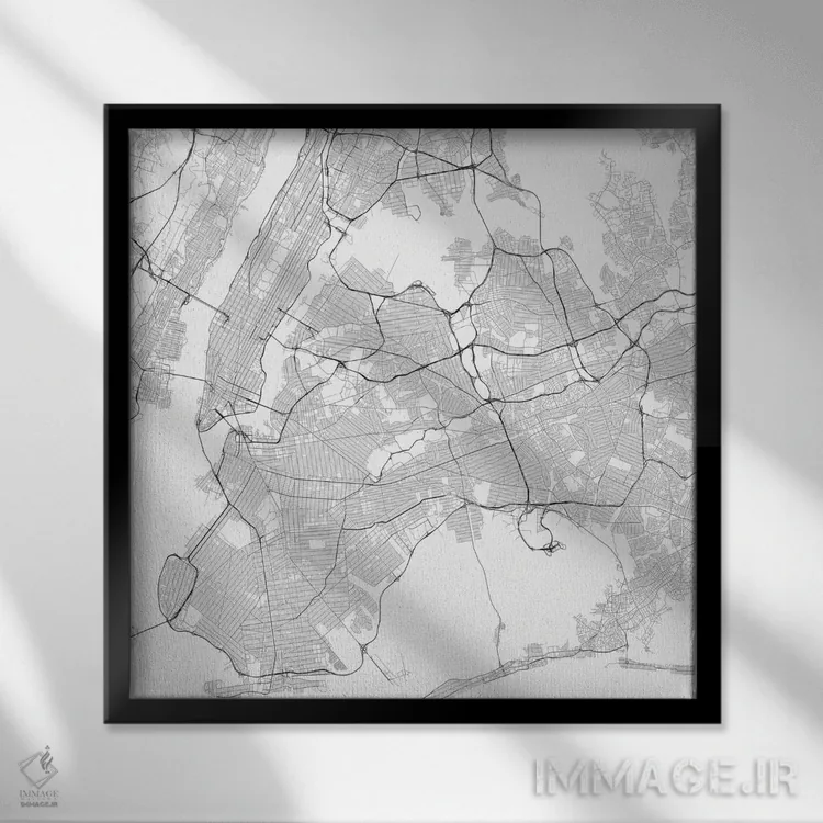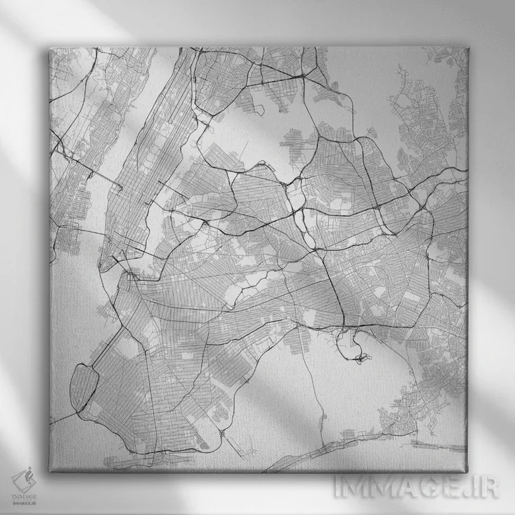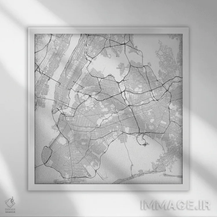 «نقشه راههای شهری نیویورک (سفید)» اثرِ «اوربانمپ (نقشه شهری؛ استودیو نقشه یا طراح)» اگر میخواهید فضا کمی هنریتر و معاصرتر دیده شود، انتخاب خوبیست.