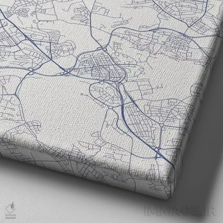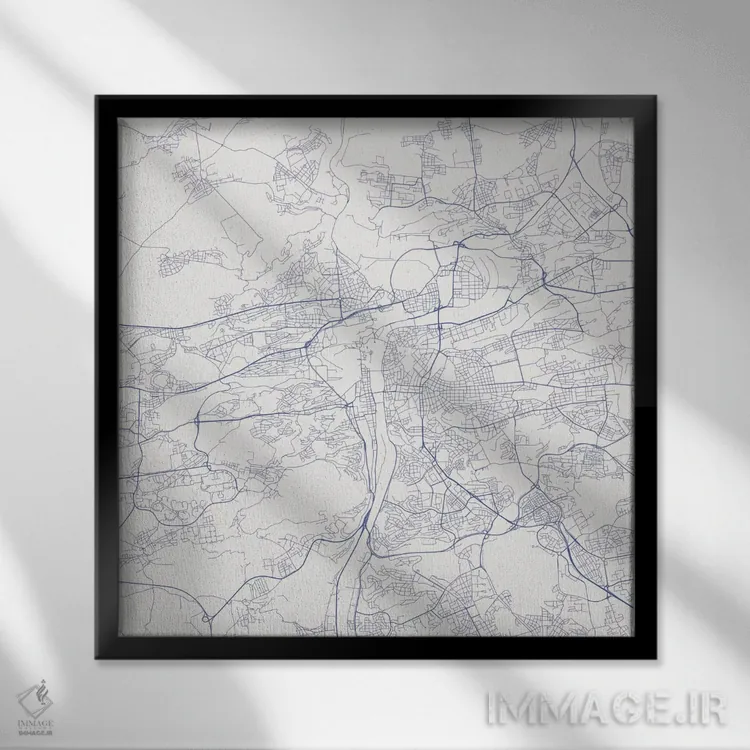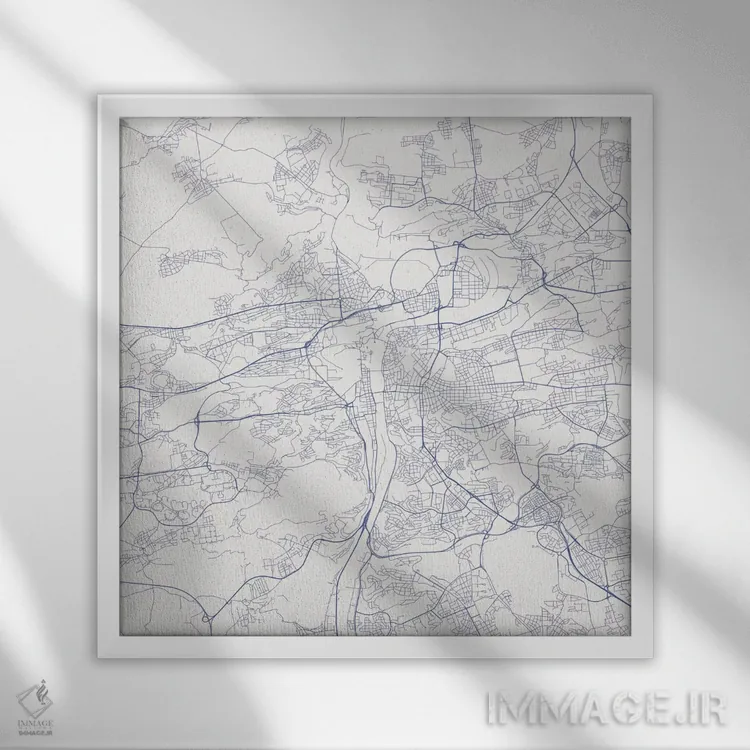 «نقشهٔ جادههای شهری پراگ (آبی)» اثرِ «اوربانمپ (نقشه شهری؛ استودیو نقشه یا طراح)» بهخاطر فرمهای آزادش، در فضاهای خنثی بهتر دیده میشود و عمق بصری ایجاد میکند.