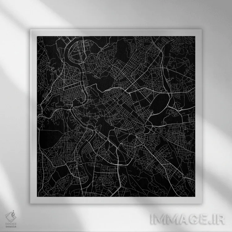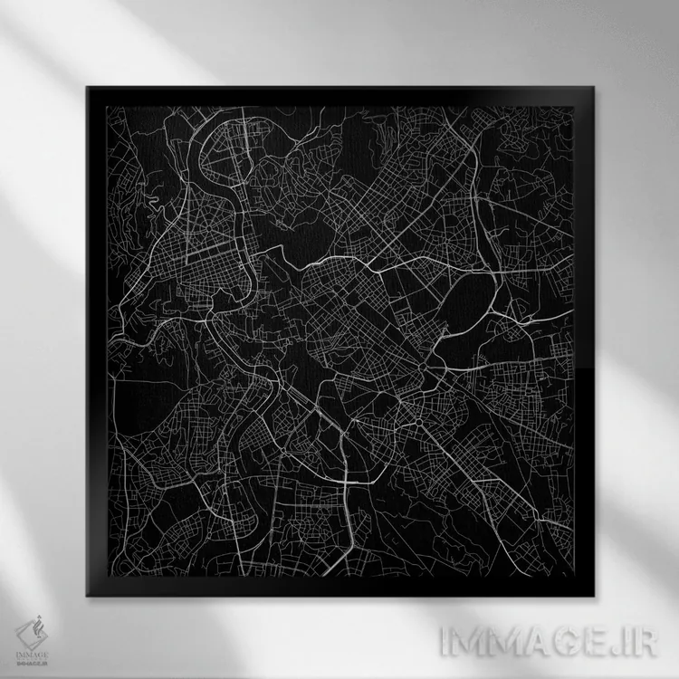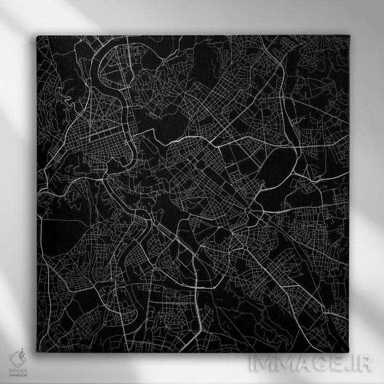 «نقشهٔ جادههای شهری رم (سیاه)» اثرِ «اوربانمپ (نقشه شهری؛ استودیو نقشه یا طراح)» یک پیشنهاد حرفهای برای اتاق کار یا نشیمنهای مدرن است؛ چون هم انرژی دارد هم کنترلشده است.
