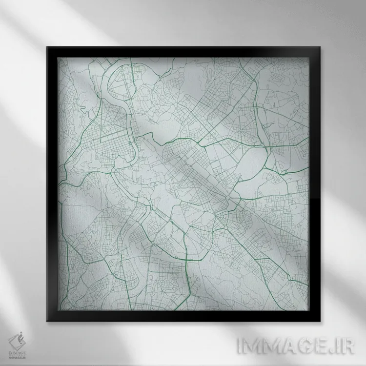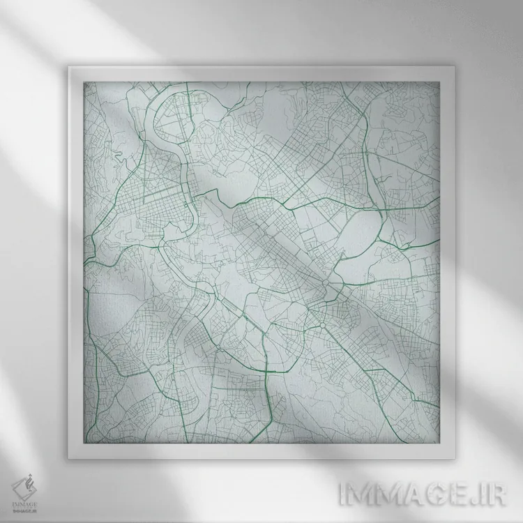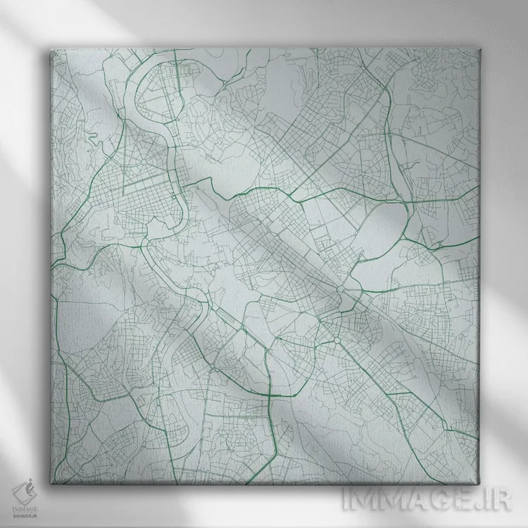 «نقشهٔ جادههای شهری رم (سبز)» اثرِ «اوربانمپ (نقشه شهری؛ استودیو نقشه یا طراح)» با رویکرد هنری، برای فضاهای مدرن و مینیمال یک نقطهکانونیِ هنری و مرتب میسازد.