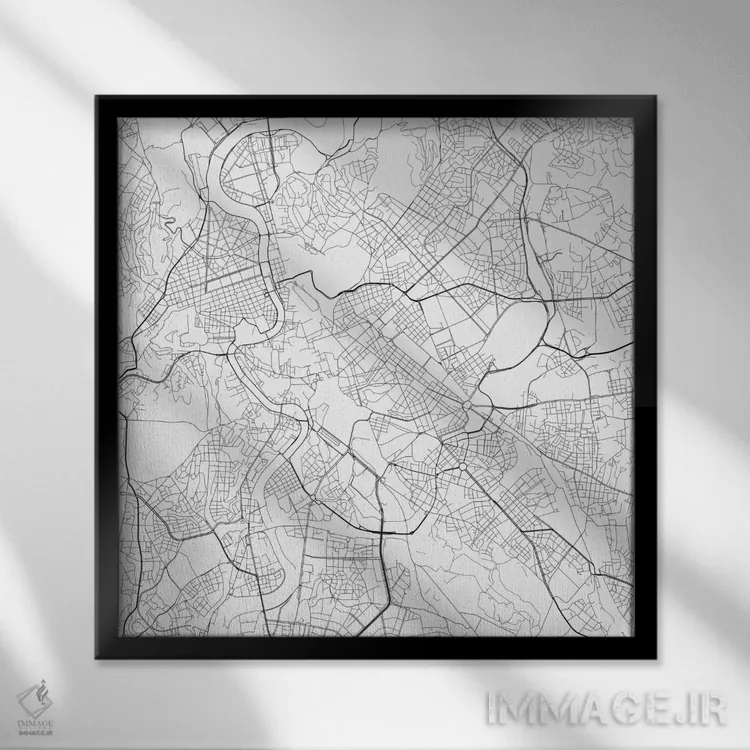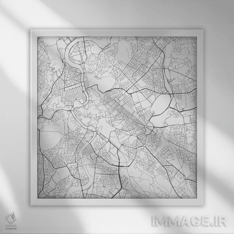 «نقشهٔ جادههای شهری رم (سفید)» اثرِ «اوربانمپ (نقشه شهری؛ استودیو نقشه یا طراح)» انتخابی شیک برای کنار خطوط صاف و متریالهای مدرن مثل بتن، فلز و چوب تیره.
