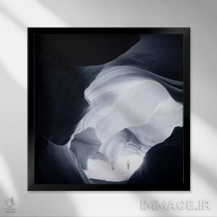براساس پالت سرد اثر، قاب سفید مات (فریم باریک) پیشنهاد اول است و نقرهای برسخورده (متالیک) مکمل. برای سفارشهای پروژهای با ابعاد و قابهای اختصاصی با ایماژ در تماس باشید.