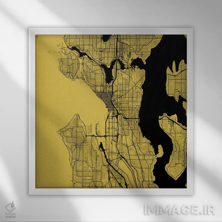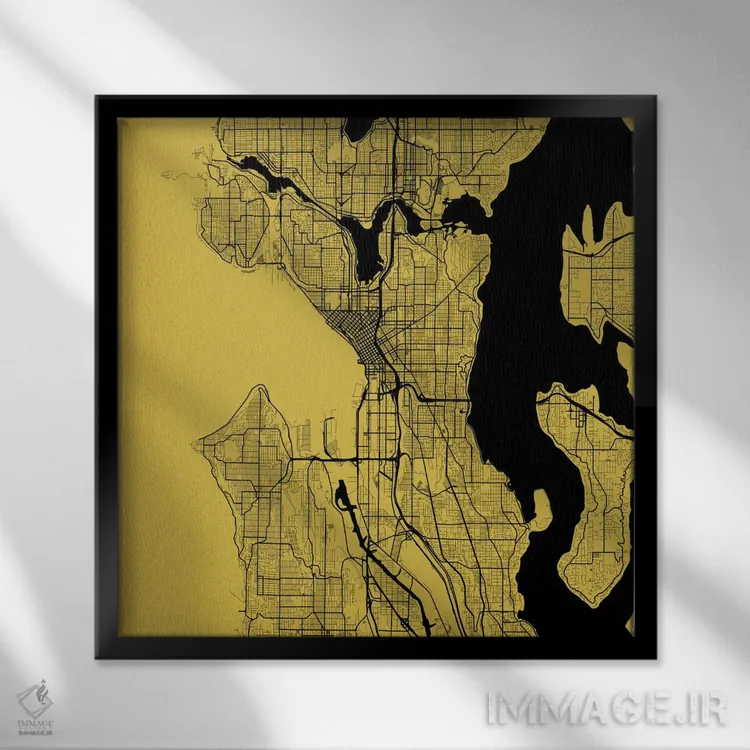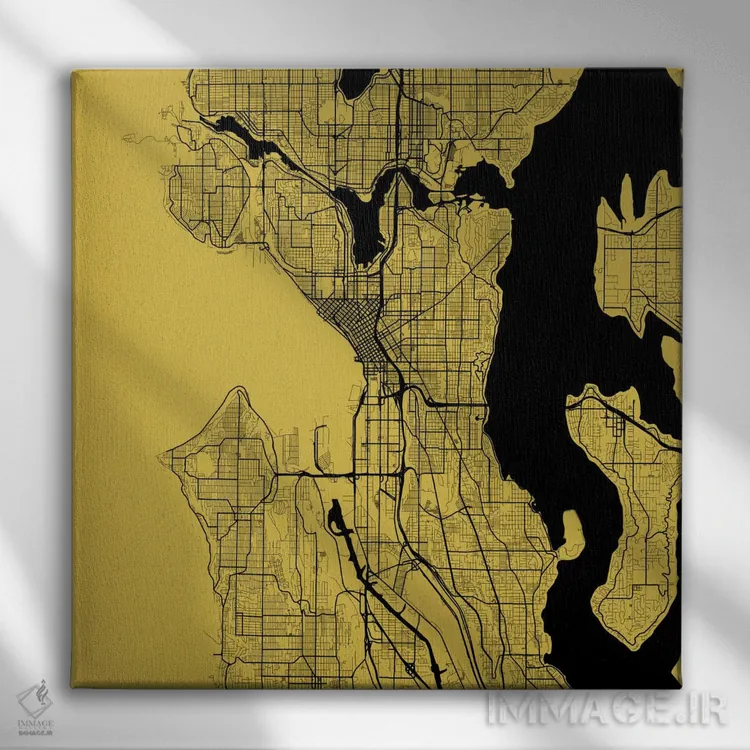 تابلو دکوراتیوِ «نقشهٔ جادههای شهری سیاتل (زرد)»؛ مناسب برای دکورهای مدرن که به یک نقطهی هنری نیاز دارند اثرِ «اوربانمپ (نقشه شهری؛ استودیو نقشه یا طراح)».