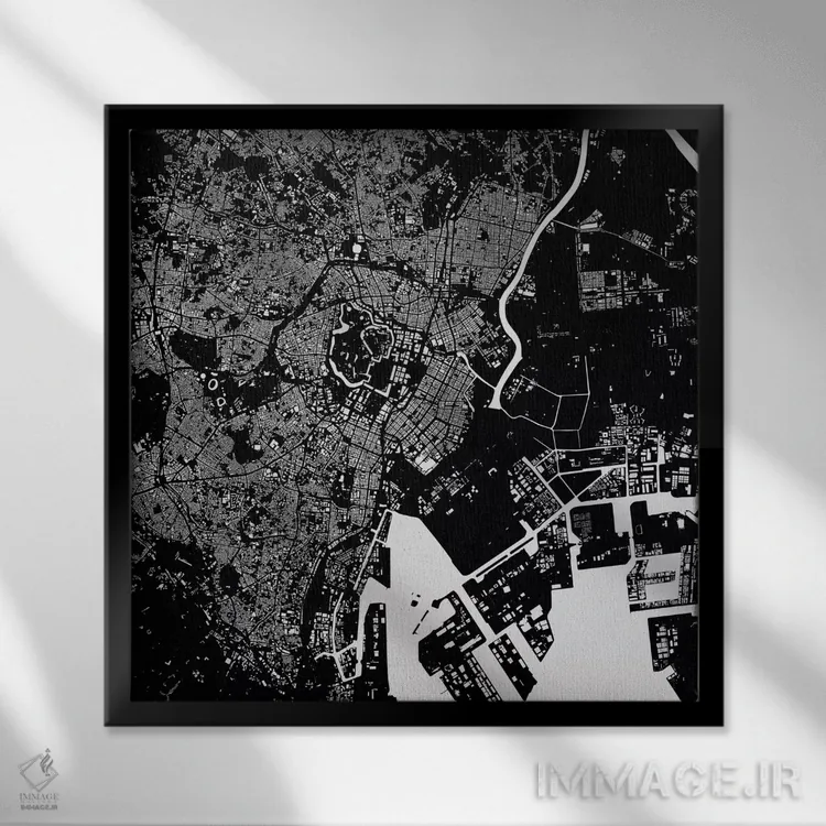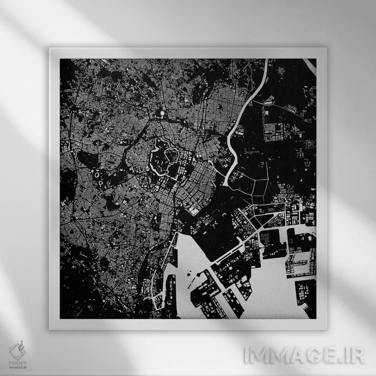 «نقشهٔ شهری توکیو (سیاه)» اثرِ «اوربانمپ (نقشه شهری؛ استودیو نقشه یا طراح)» بهخاطر فرمهای آزادش، در فضاهای خنثی بهتر دیده میشود و عمق بصری ایجاد میکند.