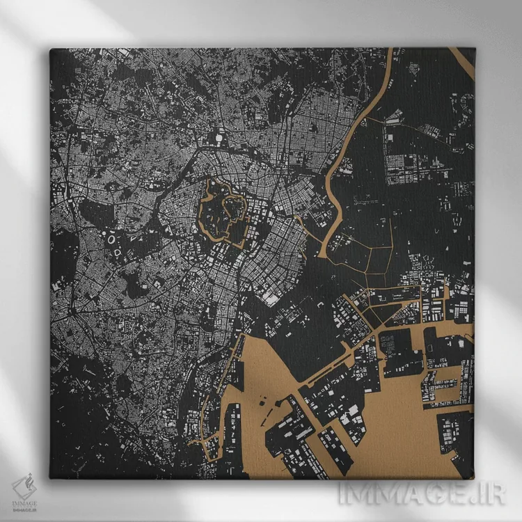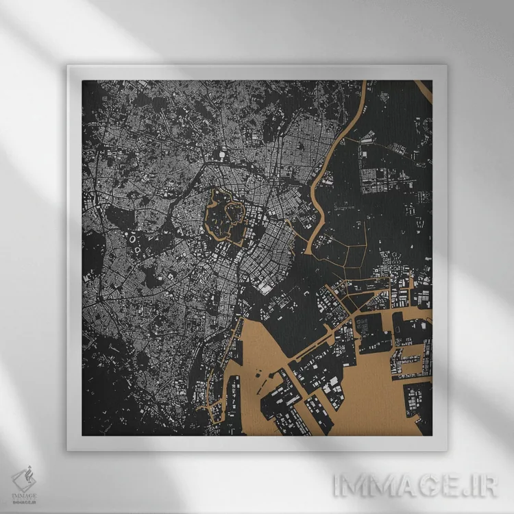 «نقشهٔ شهری توکیو (طلایی)» اثرِ «اوربانمپ (نقشه شهری؛ استودیو نقشه یا طراح)» اگر میخواهید فضا کمی هنریتر و معاصرتر دیده شود، انتخاب خوبیست.
