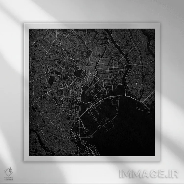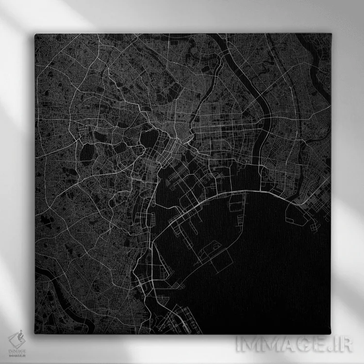 «نقشهٔ جادههای شهری توکیو (سیاه)» اثرِ «اوربانمپ (نقشه شهری؛ استودیو نقشه یا طراح)» با لحن هنری، نقطهٔ کانونی میسازد بدون اینکه فضا را شلوغ کند.