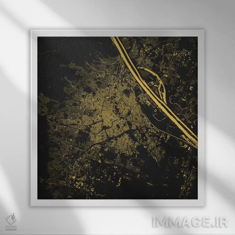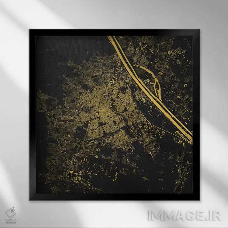 تابلو نقشهٔ شهری وین (زرد) اثر اوربان‌مپ (نقشه شهری؛ استودیو نقشه یا طراح) - نمای قاب‌دار مشکی