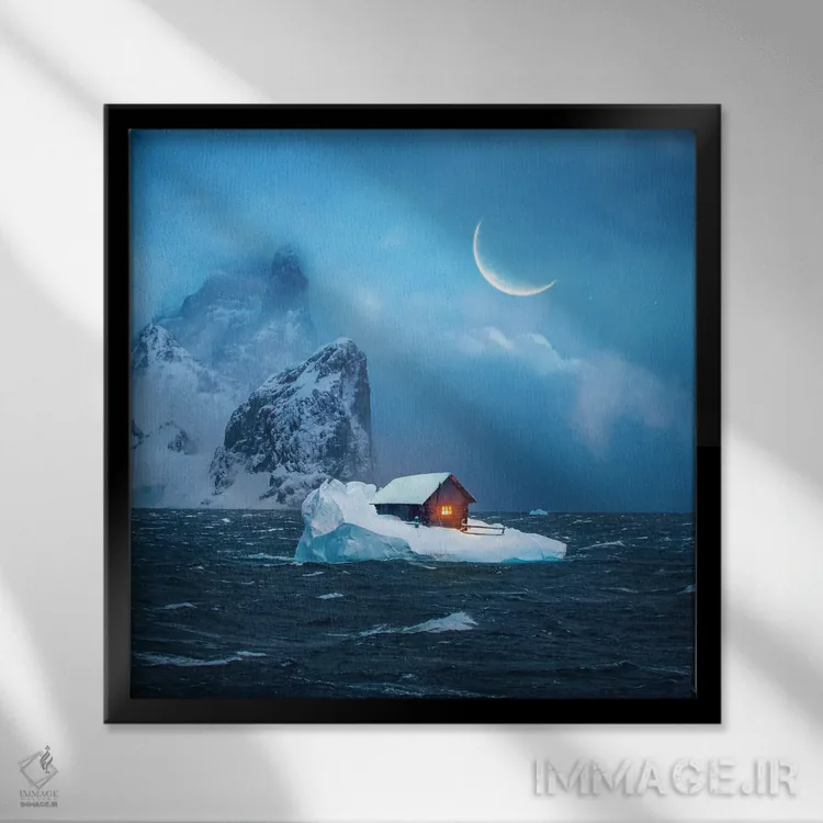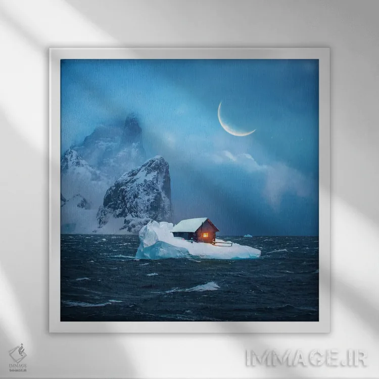 براساس پالت سرد اثر، قاب سفید مات (فریم باریک) پیشنهاد اول است و نقرهای برسخورده (متالیک) مکمل. برای سفارشهای پروژهای با ابعاد و قابهای اختصاصی با ایماژ در تماس باشید.