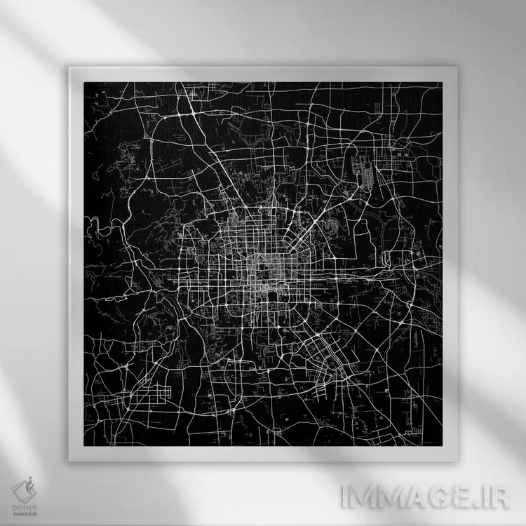 تابلو نقشهٔ شهری پکن (سیاه) اثر اوربان‌مپ (نقشه شهری؛ استودیو نقشه یا طراح) - نمای قاب‌دار سفید
