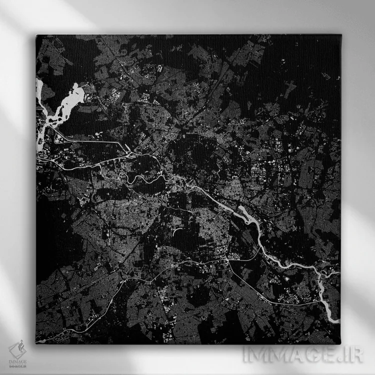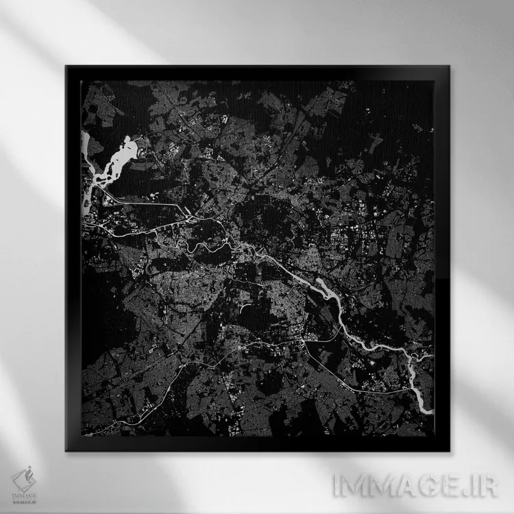 «نقشهٔ شهری برلین (سیاه)» اثرِ «اوربانمپ (نقشه شهری؛ استودیو نقشه یا طراح)» اگر میخواهید فضا کمی هنریتر و معاصرتر دیده شود، انتخاب خوبیست.