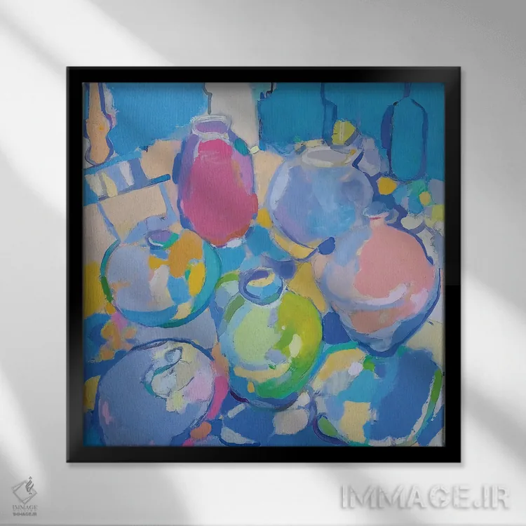 براساس پالت ترکیبی اثر، قاب تیک گرم (چوبی) پیشنهاد اول است و مشکی مات (فریم متوسط) مکمل. برای سفارشهای پروژهای با ابعاد و قابهای اختصاصی با ایماژ در تماس باشید.