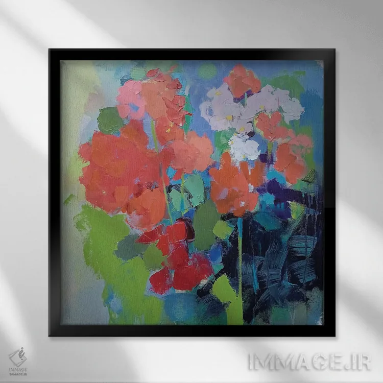 براساس پالت ترکیبی اثر، قاب تیک گرم (چوبی) پیشنهاد اول است و مشکی مات (فریم متوسط) مکمل. برای سفارشهای پروژهای با ابعاد و قابهای اختصاصی با ایماژ در تماس باشید.