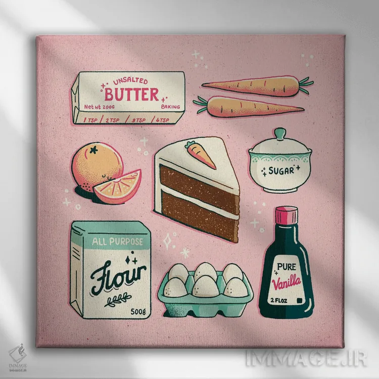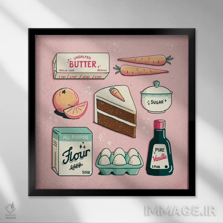 این تابلو با عنوان «کیک هویج» اثرِ «ایو اندرسون»، حسِ گرم و صمیمی به فضا میدهد.