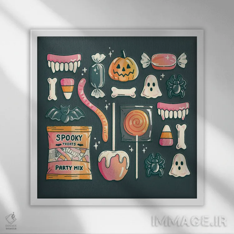 تابلو آبنبات هالووینی اثر ایو اندرسون - نمای قاب‌دار سفید