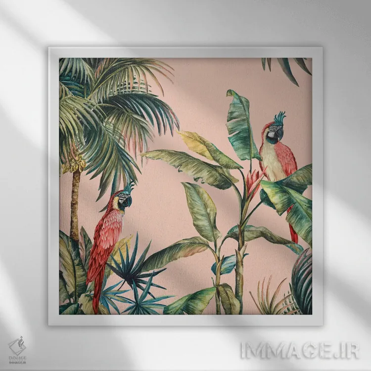 این اثر با عنوان «تروپیکانو IV» اثرِ «اوا واتس» به دیوار، انرژیِ نرم و زنده میدهد؛ برای دکورهایی با رنگهای خنثی انتخابی خوشسلیقه است. به دیوار، قصه میدهد—اما قصهای آرام و شیک.