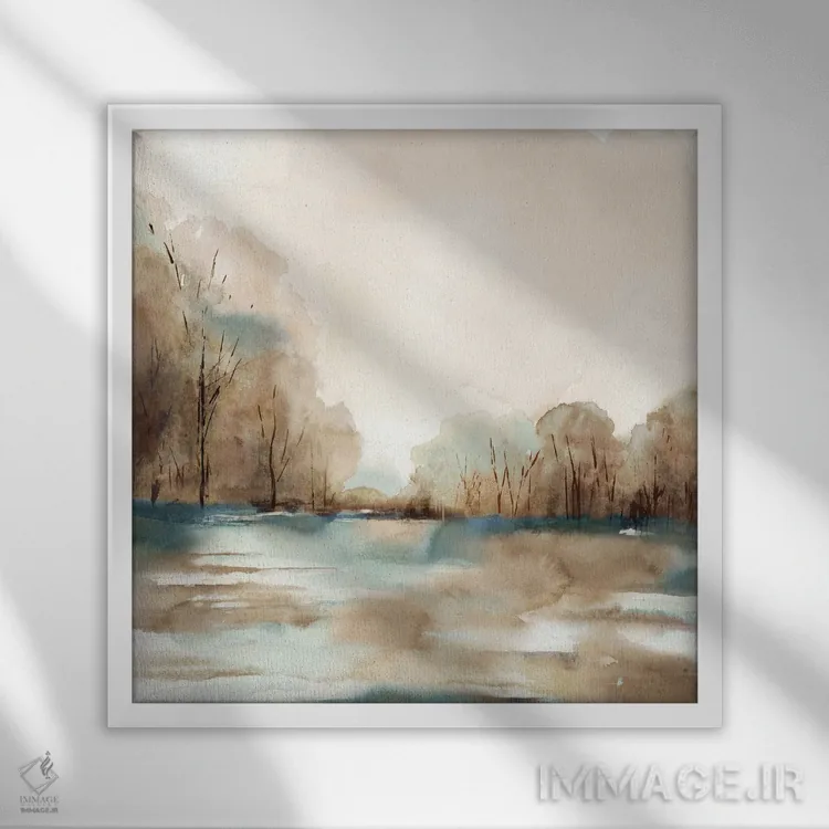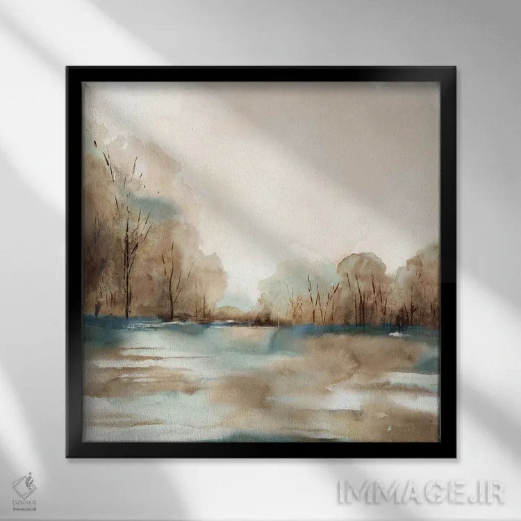 براساس پالت گرم اثر، قاب بلوط روشن (چوبی) پیشنهاد اول است و استخوانی ملایم مکمل. برای سفارشهای پروژهای با ابعاد و قابهای اختصاصی با ایماژ در تماس باشید.