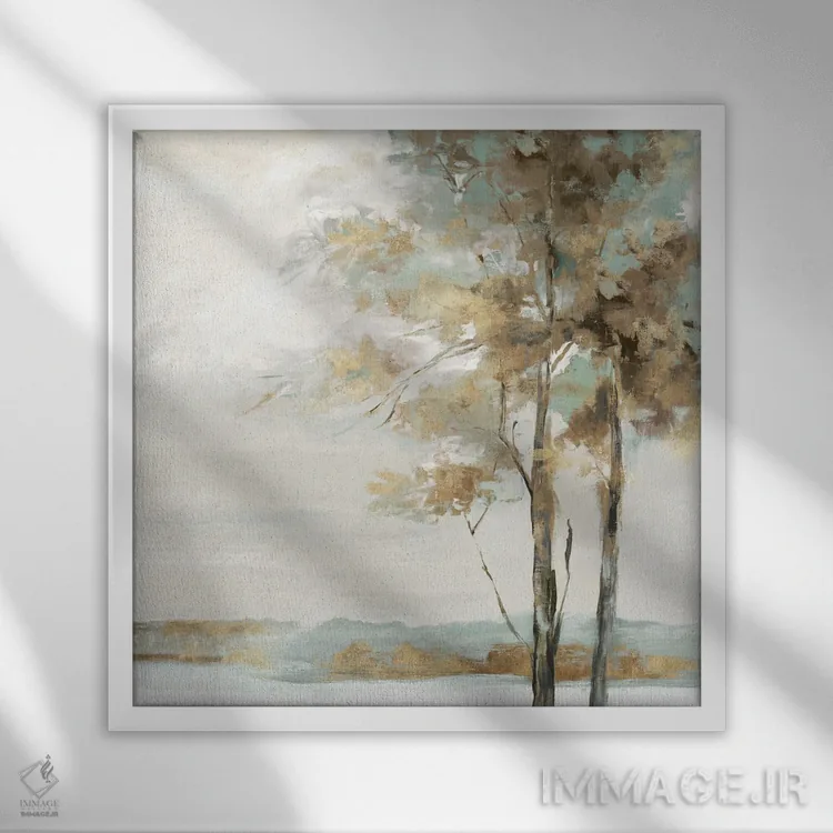 براساس پالت گرم اثر، قاب بلوط روشن (چوبی) پیشنهاد اول است و استخوانی ملایم مکمل. برای سفارشهای پروژهای با ابعاد و قابهای اختصاصی با ایماژ در تماس باشید.