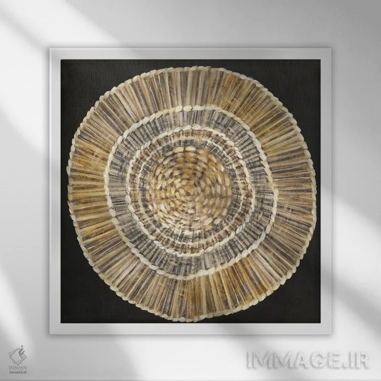 براساس پالت گرم اثر، قاب بلوط روشن (چوبی) پیشنهاد اول است و استخوانی ملایم مکمل. برای سفارشهای پروژهای با ابعاد و قابهای اختصاصی با ایماژ در تماس باشید.