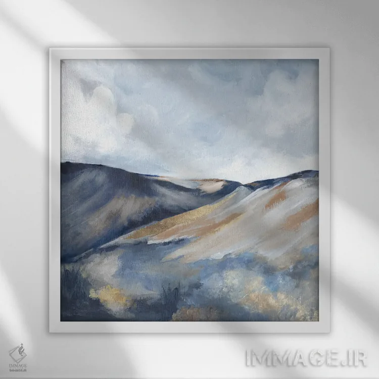 براساس پالت سرد اثر، قاب سفید مات (فریم باریک) پیشنهاد اول است و نقرهای برسخورده (متالیک) مکمل. برای سفارشهای پروژهای با ابعاد و قابهای اختصاصی با ایماژ در تماس باشید.