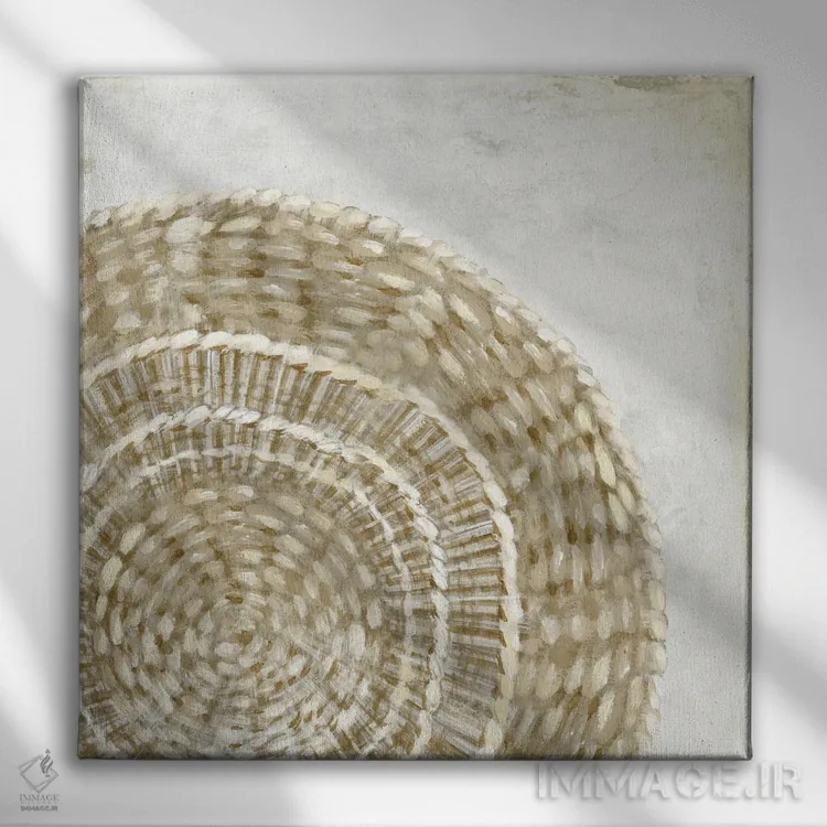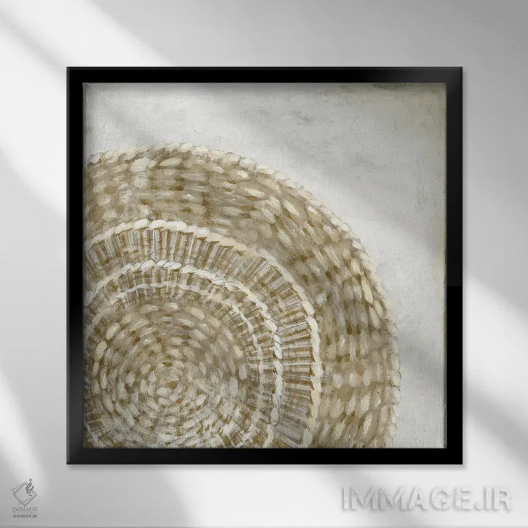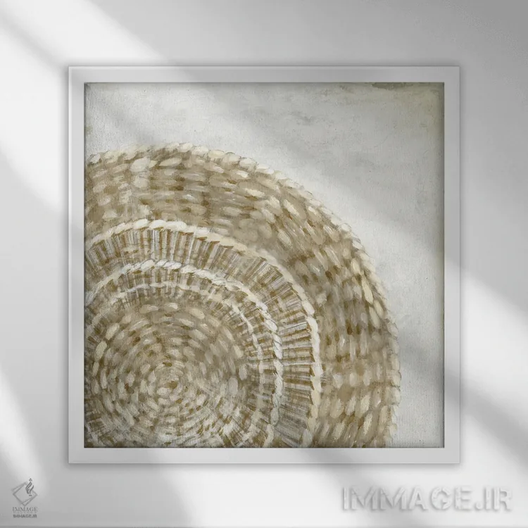 براساس پالت گرم اثر، قاب بلوط روشن (چوبی) پیشنهاد اول است و استخوانی ملایم مکمل. برای سفارشهای پروژهای با ابعاد و قابهای اختصاصی با ایماژ در تماس باشید.