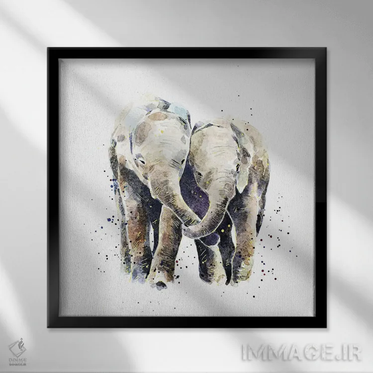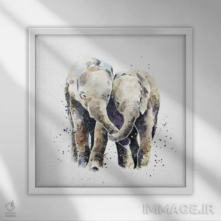 تابلو دو فیل اثر ادز واترکالرز (برند نقاشی آبرنگ) - نمای قاب‌دار سفید