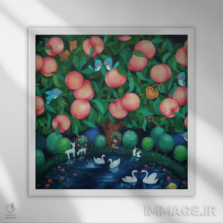 براساس پالت ترکیبی اثر، قاب تیک گرم (چوبی) پیشنهاد اول است و مشکی مات (فریم متوسط) مکمل. برای سفارشهای پروژهای با ابعاد و قابهای اختصاصی با ایماژ در تماس باشید.