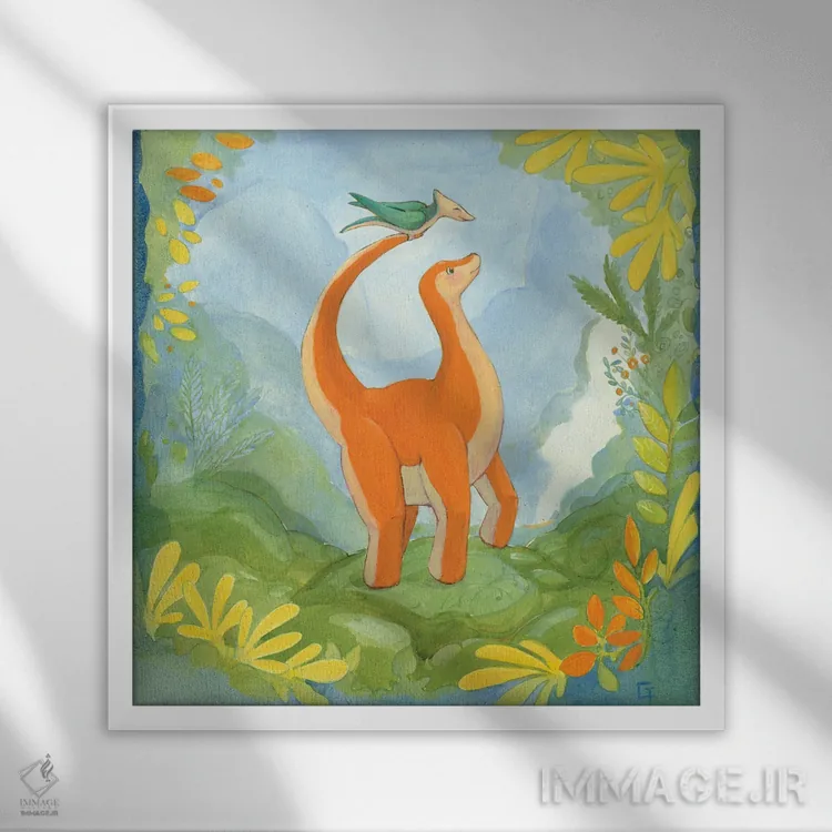 برای دیواری که میخواهید سلیقهتان را آرام و دقیق نشان بدهد، «برونتوسوروس بغلکردنی» اثرِ «مایت فلای آرت اند ایلاستریشن (استودیو طراحی و تصویرگری)» بین نور و رنگ، تعادل خوشنشینی میسازد؛ برای خانههایی که به هماهنگی رنگها اهمیت میدهند پیشنهاد میشود. برای ترکیب با چوب، سنگ یا فلز، انتخابی دقیق است.