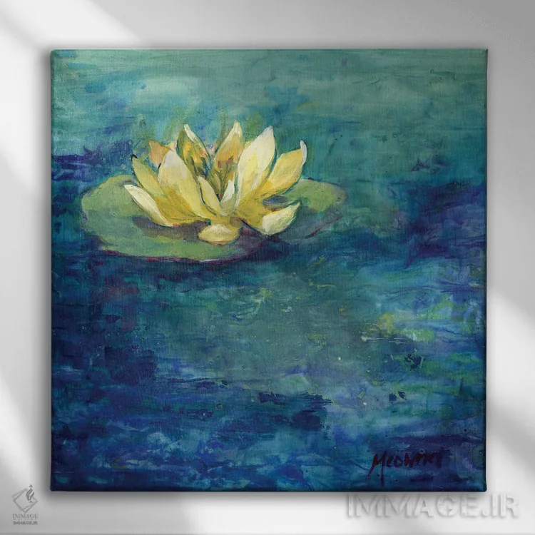 تابلو دکوراتیو نیلوفر آبی زرد اثر مایت فلای آرت اند ایلاستریشن