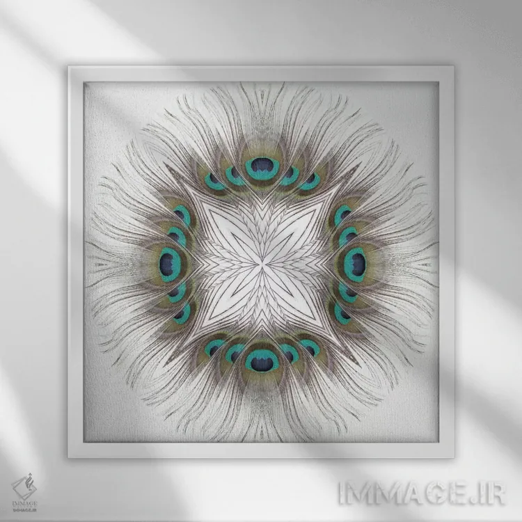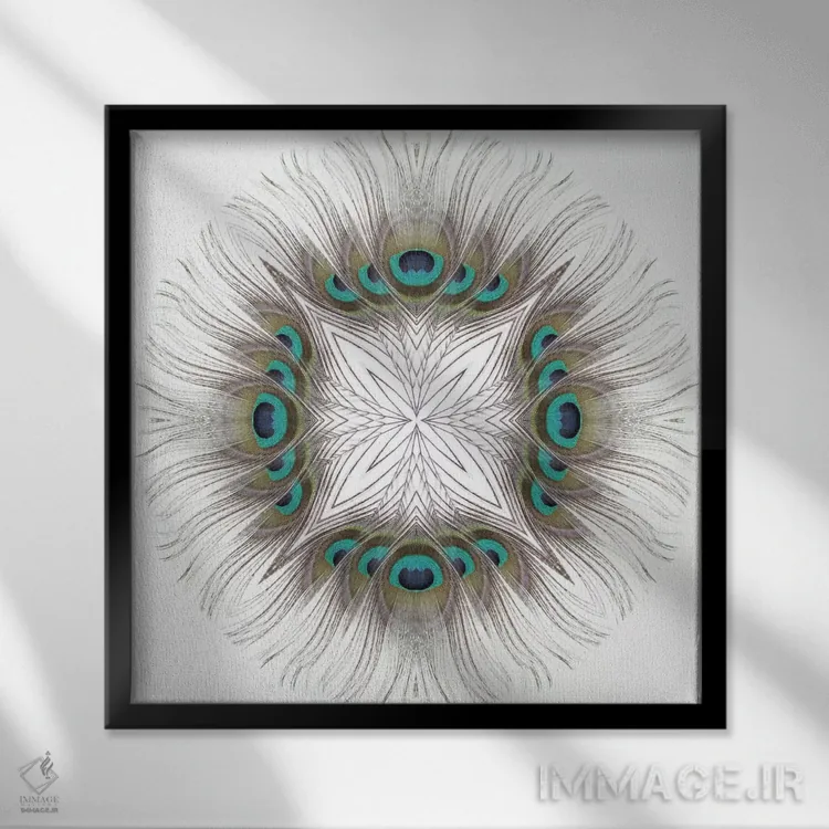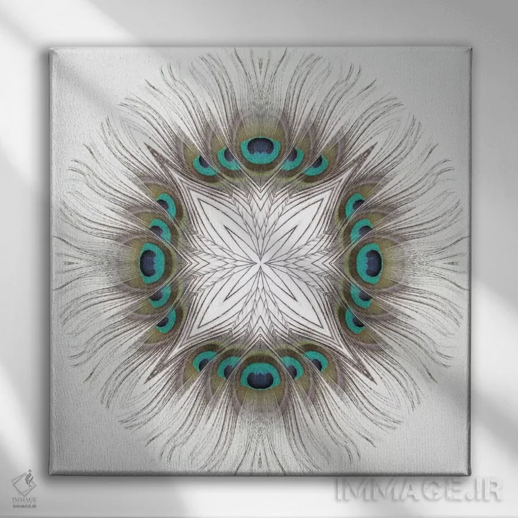«ماندالا پر طاووس» اثرِ «آلیسون فنل» با لحن دکور بوهمی و موضوعِ این اثر، برای چیدمانهای آزاد، رنگهای گرم و بافتهای طبیعی انتخاب خوبی است.
