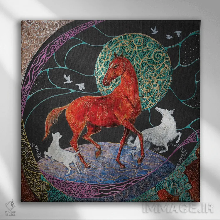 براساس پالت ترکیبی اثر، قاب تیک گرم (چوبی) پیشنهاد اول است و مشکی مات (فریم متوسط) مکمل. برای سفارشهای پروژهای با ابعاد و قابهای اختصاصی با ایماژ در تماس باشید.
