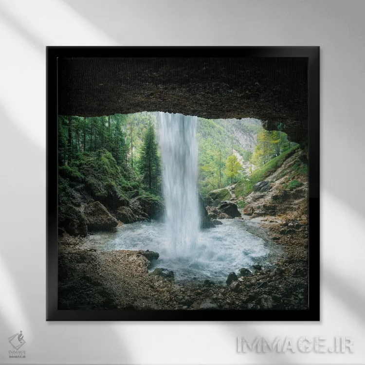 تابلو پشت آبشار اثر فابیان فورتمن - نمای قاب‌دار مشکی
