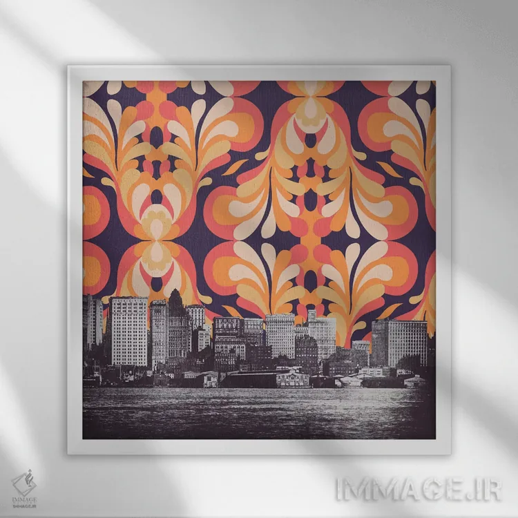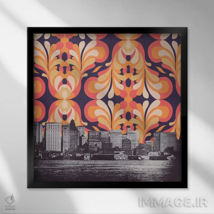 تابلو آسمان‌های رنگارنگ بر فراز نیویورک اثر فلوران بُدار (هنرمند فرانسوی) - نمای قاب‌دار مشکی