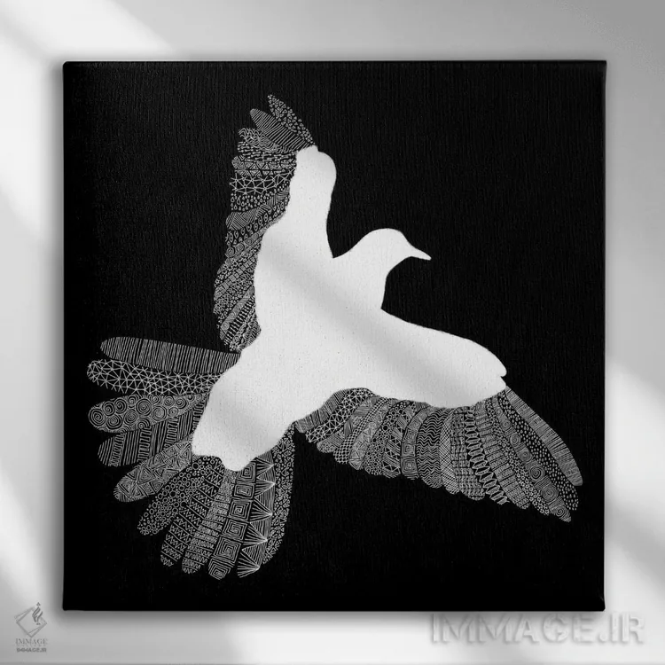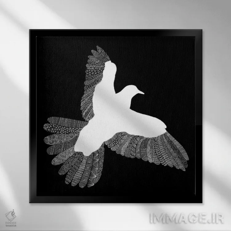 تابلو پرنده روی زمینه مشکی اثر فلوران بُدار (هنرمند فرانسوی) - نمای پرسپکتیو محصول