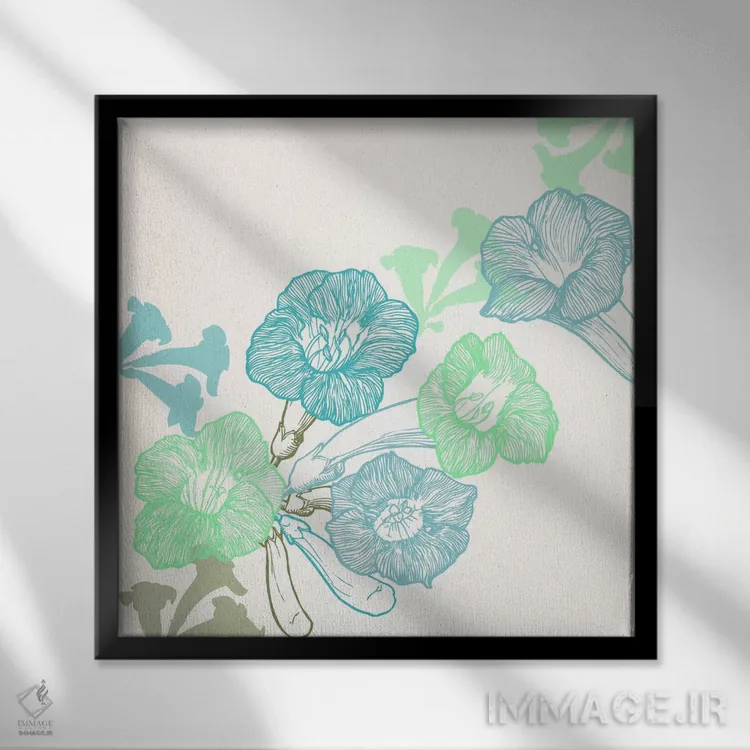 اگر دوست دارید دیوار روشنتر و آرامتر دیده شود، «بنفشهها و برگها (سبز و آبی)» اثرِ «فایو بای فایو کالکتیو» چیدمان را از خشکی بیرون میآورد، برای نشیمنهای روشن گزینهٔ مناسبیست. فضا را شلوغ نمیکند؛ فقط لطیفترش میکند.