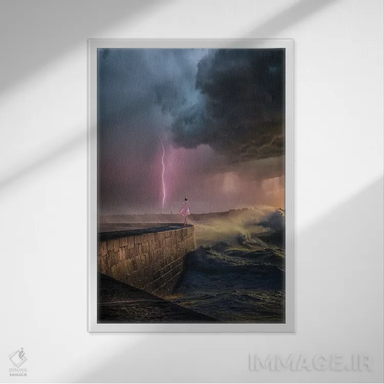 براساس پالت ترکیبی اثر، قاب تیک گرم (چوبی) پیشنهاد اول است و مشکی مات (فریم متوسط) مکمل. برای سفارشهای پروژهای با ابعاد و قابهای اختصاصی با ایماژ در تماس باشید.