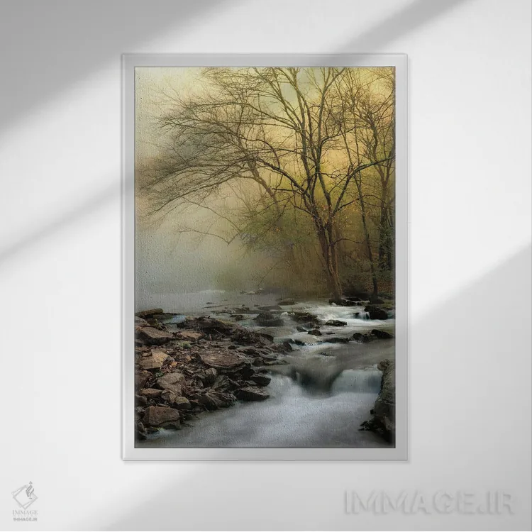 براساس پالت گرم اثر، قاب بلوط روشن (چوبی) پیشنهاد اول است و استخوانی ملایم مکمل. برای سفارشهای پروژهای با ابعاد و قابهای اختصاصی با ایماژ در تماس باشید.