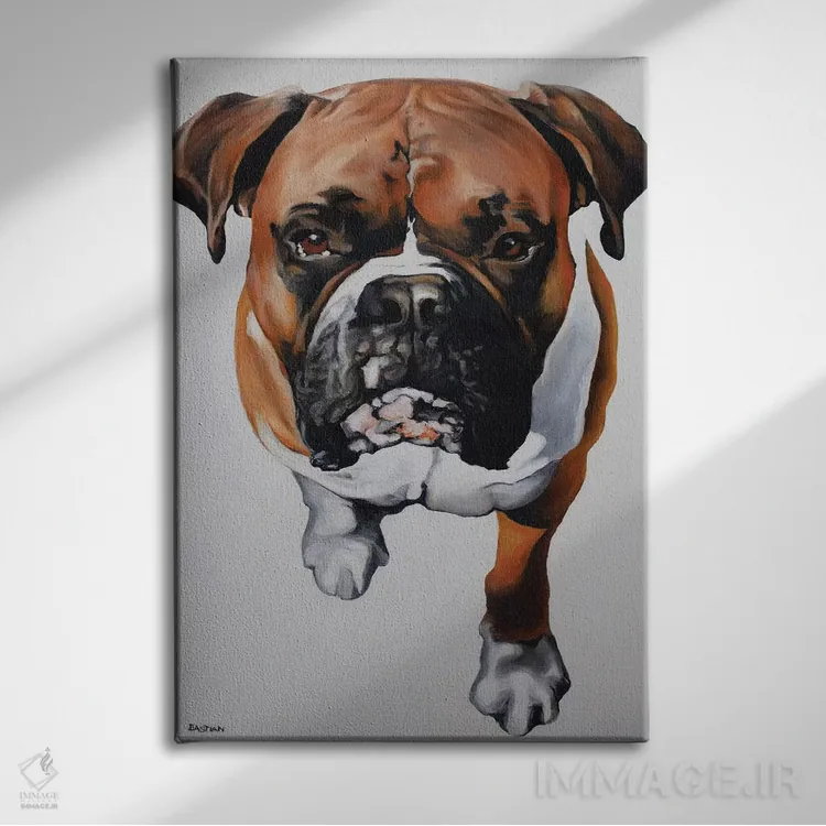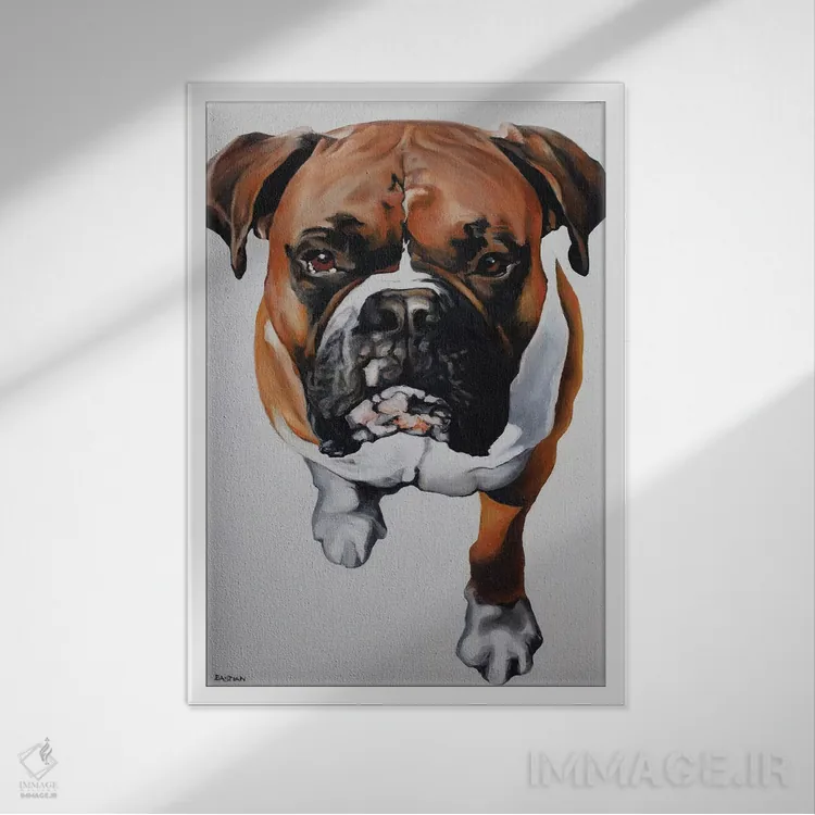 برای دکورهای صمیمی، «بوکسر (سگ یا ورزشکار مشتزن)» اثرِ «کلارا باستین» به دیوار، انرژیِ نرم و زنده میدهد؛ برای کافههای کوچک و صمیمی انتخابی خوشسلیقه است. حسش صمیمی است، اما کیفیتش جدی و خوشپرداخت.