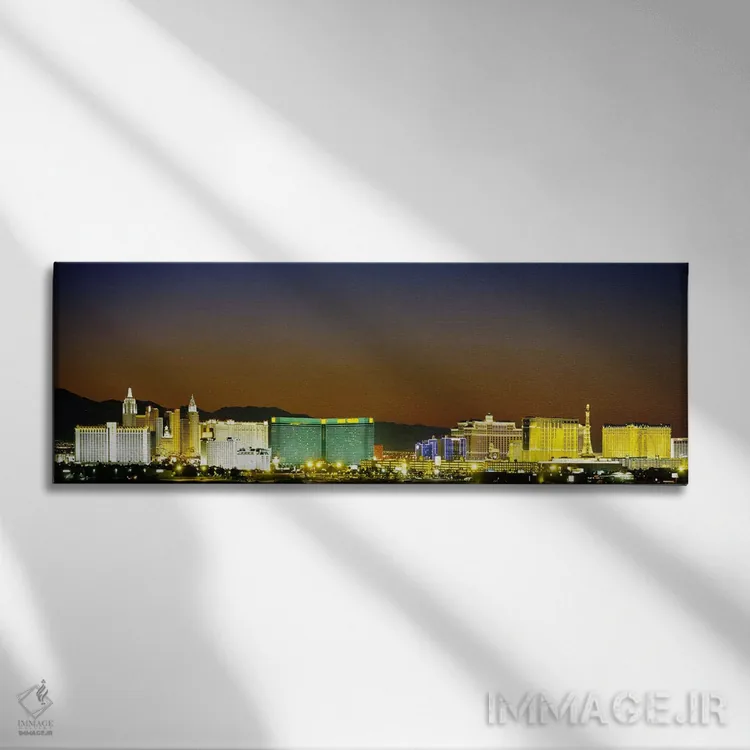 «Las Vegas، Nevada، USA #2، ساختمانهای روشن در غروب، لاس وگاس، نوادا، ایالات متحده (نمونه ۲)» اثرِ «پانورامیک ایمجز (استودیو عکاسی عریض)» یک اثر خوشریتم است: نگاه را آرام هدایت میکند و به فضا شخصیت میدهد.