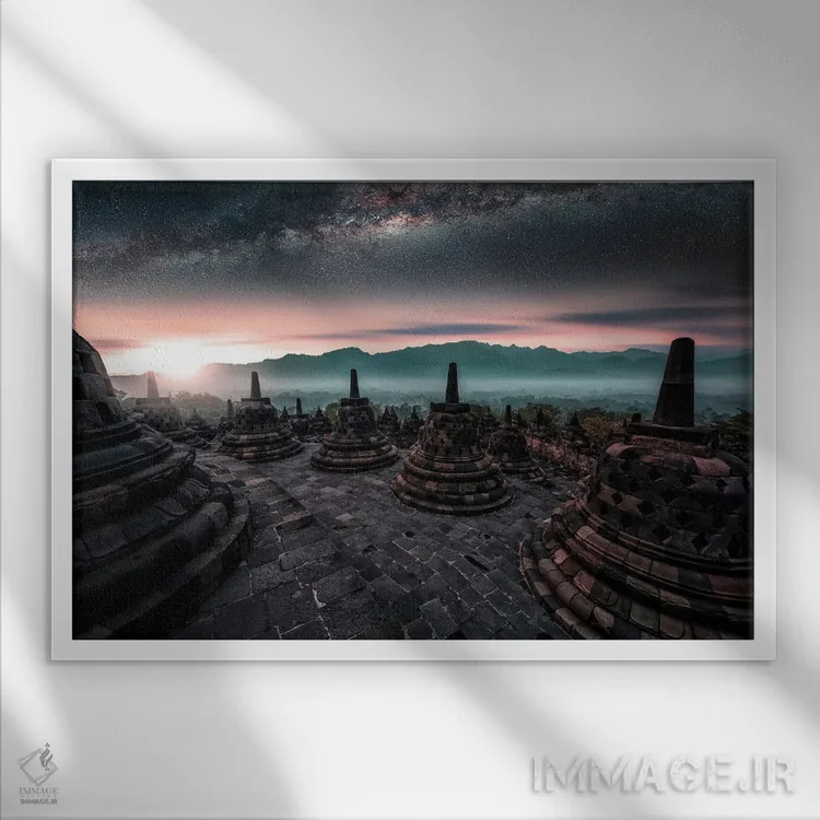 برای دکورهای ساختارمند و مدرن، «طلوع آفتاب برابودور» اثرِ «مانجیک پیکچرز (استودیو عکاسی یا فیلمسازی)» حس معاصر و منظم به دکور بدهد؛ برای اتاق کار انتخابی خوشسلیقه است. جزئیاتش از نزدیک هم خواناست و خوشپرداخت.