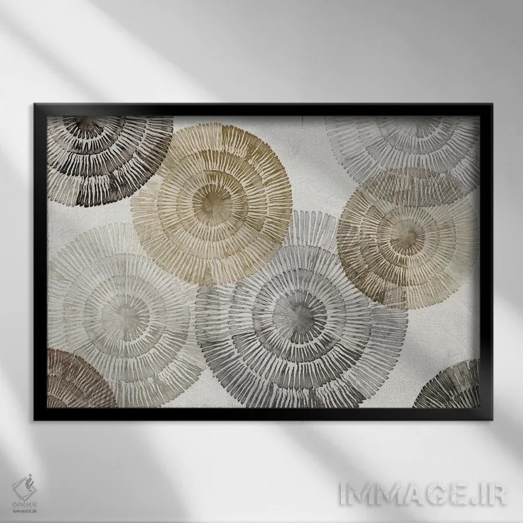 براساس پالت گرم اثر، قاب بلوط روشن (چوبی) پیشنهاد اول است و استخوانی ملایم مکمل. برای سفارشهای پروژهای با ابعاد و قابهای اختصاصی با ایماژ در تماس باشید.