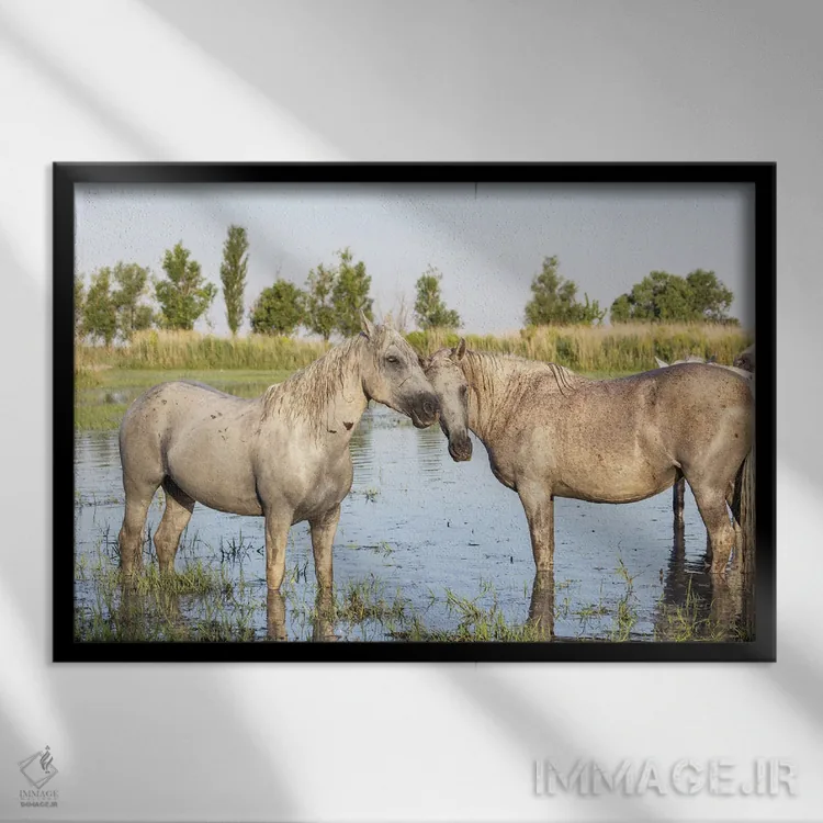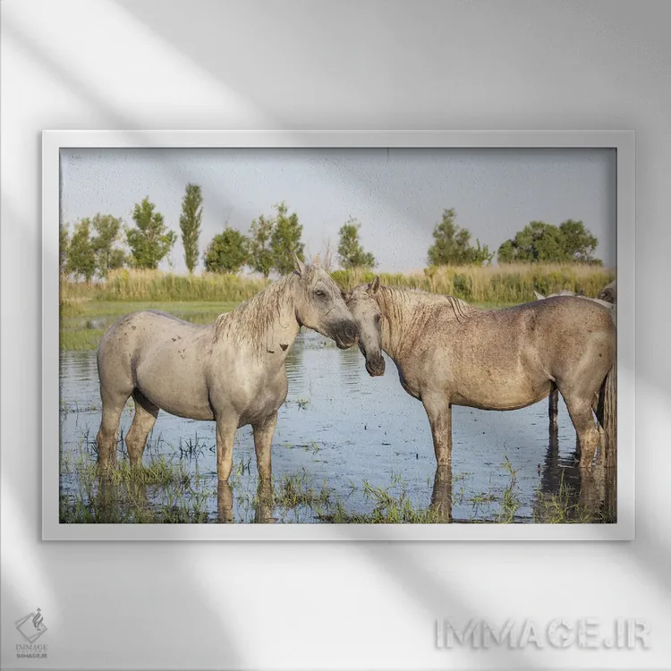 «Provence—Alpes—Cote D'Azur، France. Horses In The Marshes Of The Camargue.، سنت—ماری—دو—لامر، پروانس—آلپ—کوت دازور، فرانسه. اسبها در باتلاقهای کامارگ.» اثرِ «امیلی ام ویلسون» میتواند به فضا، گرمیِ ملایم اضافه کند؛ برای اتاق بازی یا گوشهٔ مطالعه پیشنهاد میشود. به دیوار، قصه میدهد—اما قصهای آرام و شیک.