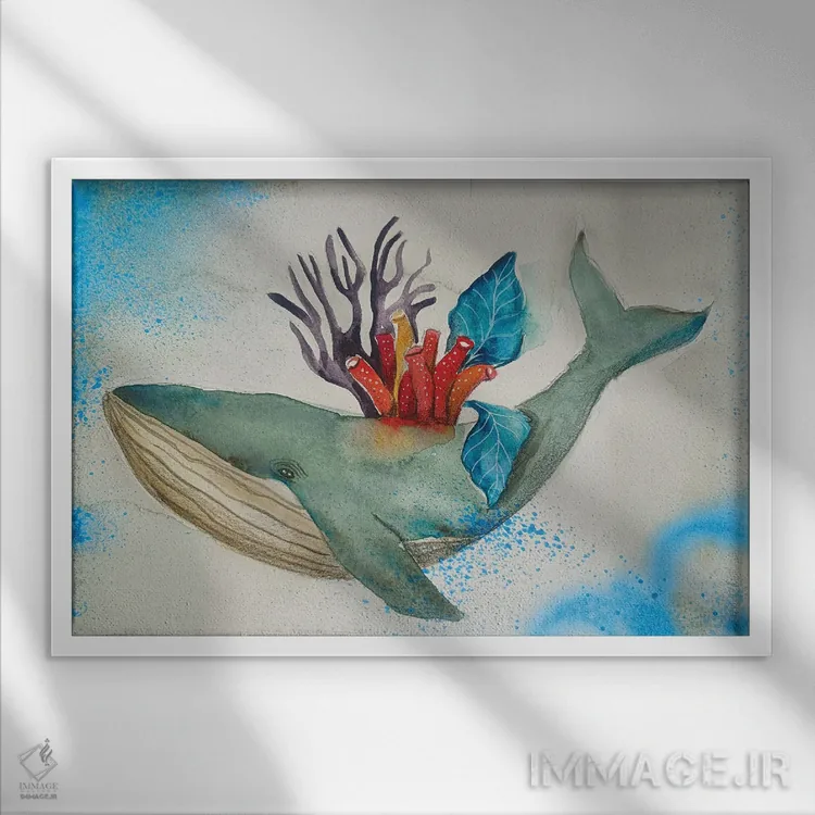 برای دیوارهای ساده، «نهنگ با مرجانها» اثرِ «اوگنیا اسمیرنوا» یک لبخند ریز به چیدمان میدهد؛ برای اتاق بازی یا گوشهٔ مطالعه انتخابی خوشسلیقه است. هر بار نگاهش میکنید، یک جزئیات تازه به چشم میآید.