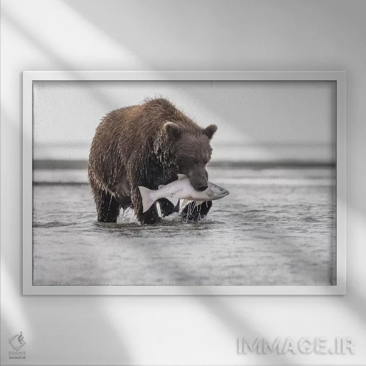 «خرس گریزلی با یک ماهی سالمون» اثرِ «اریک فیشر» میتواند به فضا، گرمیِ ملایم اضافه کند؛ برای اتاق کودک (بدون لحن کودکانه) پیشنهاد میشود. اگر دنبال اثر دوستداشتنیِ «بیغلو» هستید، این یکی دقیق مینشیند.