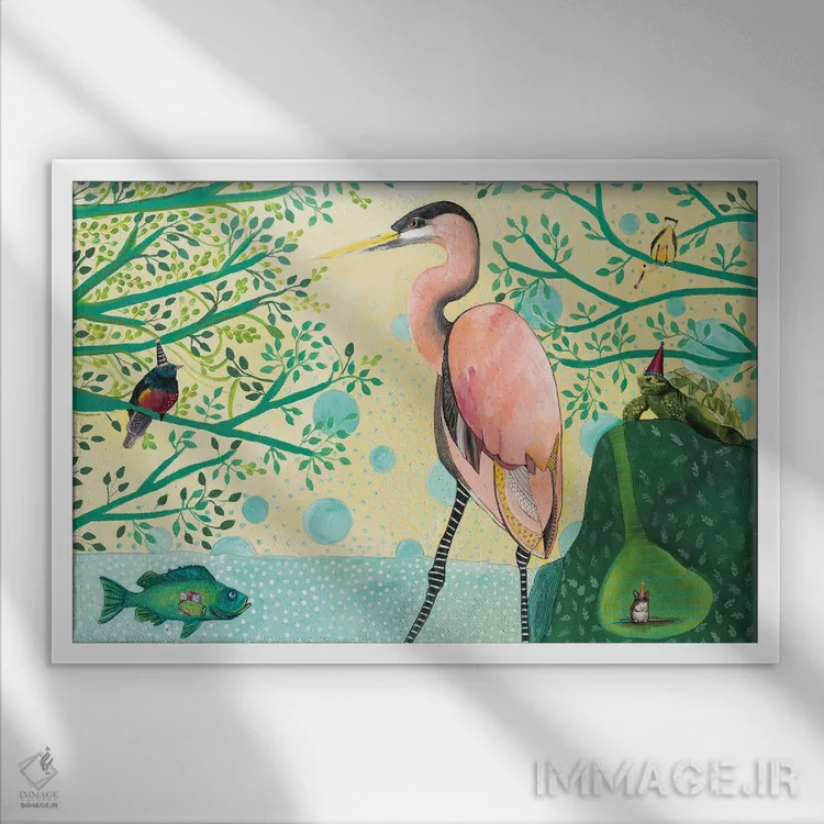 این اثر با عنوان «جشن حیوانات» اثرِ «امیلی رید» در کنار رنگهای خنثی، تضاد دلچسبی میسازد؛ برای اتاق بازی یا گوشهٔ مطالعه انتخابی خوشسلیقه است. اگر دنبال اثر دوستداشتنیِ «بیغلو» هستید، این یکی دقیق مینشیند.