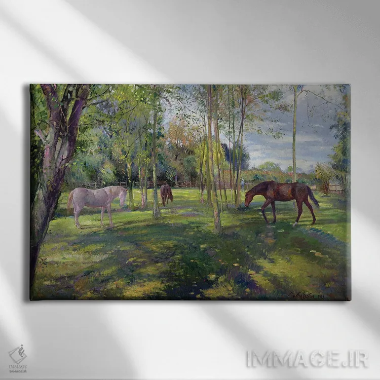 اگر میخواهید دیوار کمی سرزندگیِ محترمانه داشته باشد، «در مرتع خانه کشیش، ۱۹۹۳» اثرِ «تیموتی ایستون» بافت و جزئیات را طوری نشان میدهد که نگاه میماند، برای نشیمنهای خانوادگی گزینهٔ مناسبیست. هم فضا را گرم میکند، هم شلوغش نمیکند.