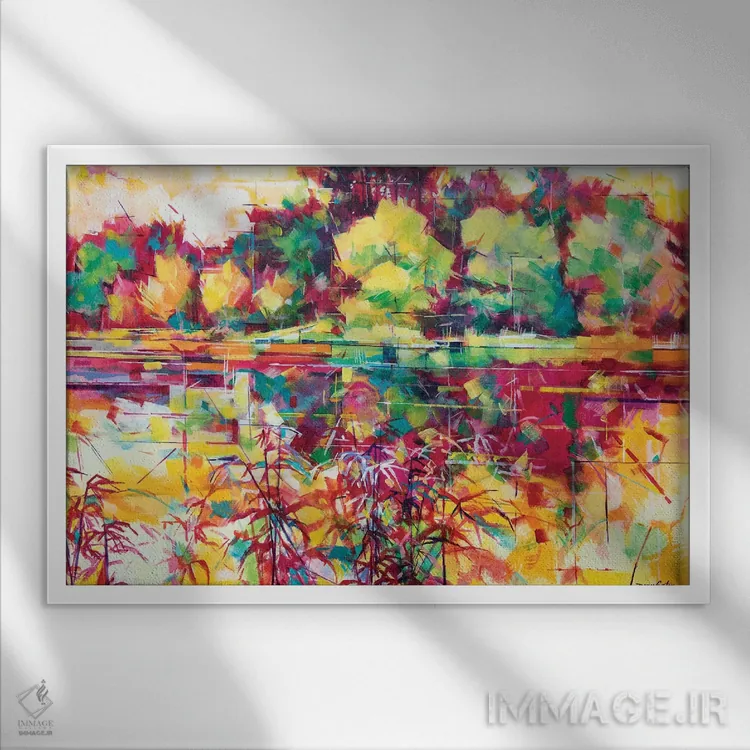 براساس پالت ترکیبی اثر، قاب تیک گرم (چوبی) پیشنهاد اول است و مشکی مات (فریم متوسط) مکمل. برای سفارشهای پروژهای با ابعاد و قابهای اختصاصی با ایماژ در تماس باشید.